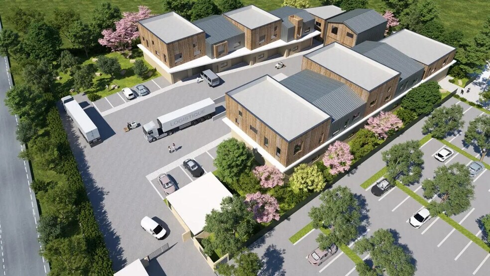 CBRE offers activity spaces starting from approximately 78 m² for sale to investors at the VILLAGE DES CARRIERES in Sussargues. Within the VILLAGE DES CARRIERES development, 7 units ranging from approximately 78 m² to 276 m² are available for block sale to investors. These activity units feature mezzanine offices and private parking spaces. Feel free to contact us for further information. Expected delivery is scheduled for the end of 2025. Each unit includes a mezzanine office area. - 1 sectional door per unit - 4 EV charging stations - Package locker - Ground floor area: 113 m² - Land area: 0 - Minimum clear height under beam: 4 m - Maximum clear height under beam: 6.6 m - Floor load capacity: 2 T/m² - Structure: Steel - Perimeter walls: Double-skin cladding - Roofing: Galvanized steel panels **Location/Transportation:** - A709 highway: 8.7 km (10 minutes) - Baillargues SNCF train station: 8.9 km (12 minutes)
