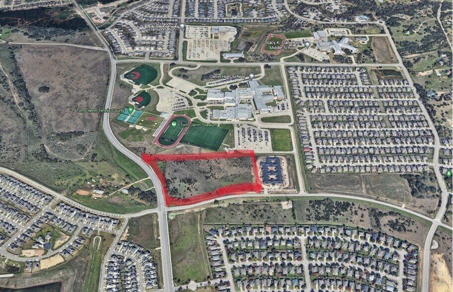 Located between Bagdad and Halsey on the north side of San Gabriel. Sign on Property. East side of driveway to Tom Glen High School. LOT 2 in picture #1 is subject property. Picture #2 is an estimate of the detention pond with easement - estimate only. This lot is right in the heart of one of the fastest growing areas of Texas!!! Rooftops for miles. San Gabriel Parkway is a direct access street from Bagdad to 183/183A. Serious cost savings to the buyer as the seller is providing everything needed for quick development; water, sewer, gas, electric, detention pond and city plat. The lot is flat with no trees, structures or wells.