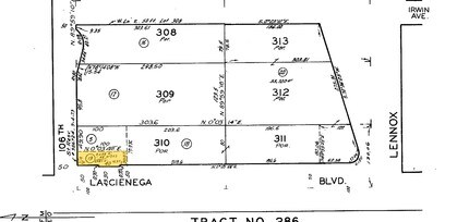 TRACT NO 286 LOT COM W ON S LINE OF 106TH ST 49.9 FT FROM NE COR OF LOT 310 TH N 0 0348 E 100 FT TH S 89 5910 W TO E LINE OF LA CIENEGA BLVD TH N THEREON AND E ON SD S LINE TO BEG PART OF LOT 310