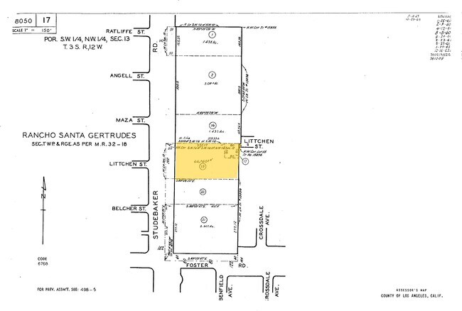 RANCHO SANTA GERTRUDES SECTIONS TOWNSHIP AND RANGE LOT EX OF ST COM AT NW COR OF SW 1/4 OF SW 1/4 OF NW 1/4 OF SEC 13 T 3S R 12W TH S ON W LINE OF SD SEC 202 FT TH S 89 2622 E TO W LINE OF TRACT NO 1/4 OF NW 1/4 OF SEC 13 T 3S R 12W