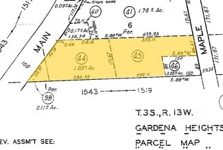 GARDENA HEIGHTS 0.11 MORE OR LESS AC COM AT SE COR OF LOT 1 TH S 88 W TO SE LINE OF MAIN ST TH NE THEREON TO NE LINE OF SD LOT TH SE THEREON TO BEG PART OF LOT 1