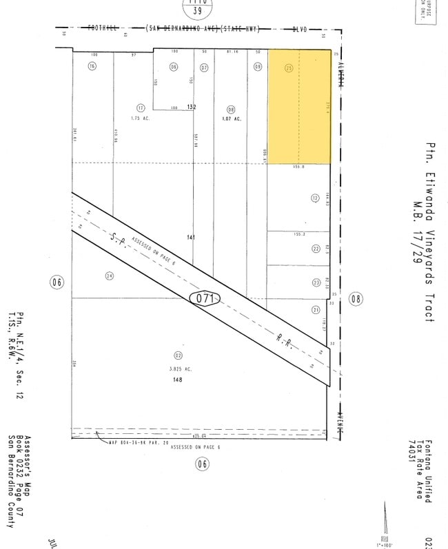 ETIWANDA VINEYARD TRACT E 2.5 AC OF LOTS 132 141 AND 148 LYING N OF P E R/W EX PTNS SD TRACT LYING IN LOTS 141 AND 148 AND EX PTN IN FOOTHILL BLVD