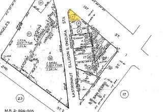CITY LANDS OF LOS ANGELES LOT ON E LINE OF WELLER ST COM N 8 5245W 34.28 FT FROM NW COR OF LOT A TR # 1666 TH N 8 52 45W 39.17 FT TH NE 69.5 FT TO SW LINE OF FIRST ST TH SE THEREON 42.24 FT OF CALIF TH SW 89 MORE OR LESS FT TO BEG