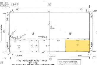 FIVE HUNDRED ACRE TR OF THE LOS ANGELES FRUIT LAND ASSOCIATION LOT ON W LINE OF ALCOA AVE COM S THEREON 435.2 FT FROM N LINE OF LOT 20 TH S ON SD W LINE 184.8 FT WITH A UNIFORM DEPTH OF 375.67 FT W PART OF LOT 20