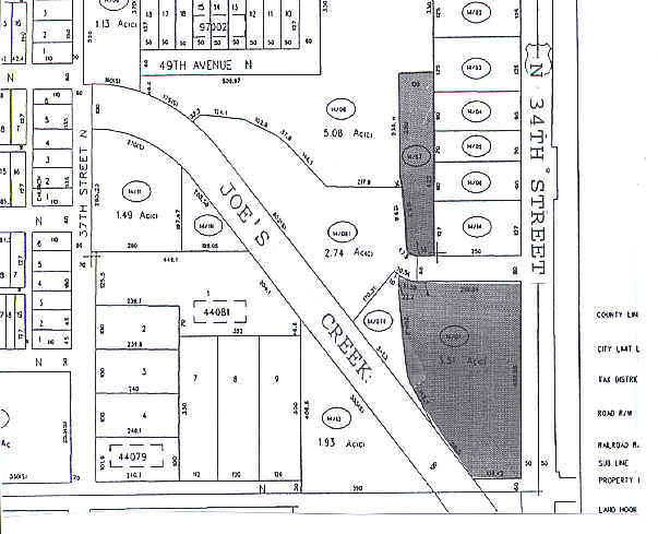 FROM SE COR OF NE 1/4 TH W 165FT (S) TO NELY LINE OF JOES CREEK TH N43DW 41.52 FT FOR POB TH N43DW 156.58 FT TH N33DW 142.73FT TH N06DW 204.28FT TH N06DE 32.24FT TH SE ALG ARC OF CURVE TO LEFT 50.47FT TH E 300FT (S) TH S 438FT (S) TH W 150FT (S) TO P