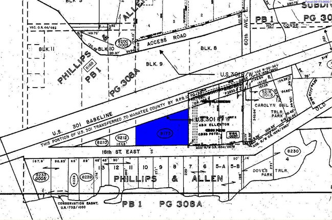 THAT PORTION OF BLK 9, PHILLIPS AND ALLENS SUB (PB 1 P 308), LY S OF US 301 HWY R/W BEING FURTHER DESC IN OR 1276 P 1226 PRMCF TOGETHER WITH VACATED RD LYING N OF ABOVE PARCEL
