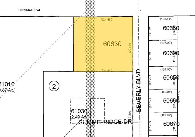 A PARCEL IN SECTIONS 25 AND 26 DESC AS FOLLOWS COM AT NE COR OF LOT 1 BLK 1 BRANDON TERRACE PARK UNIT 2 THN N ALG WLY R/W BEVERLY BLVD 315 FT FOR POB THN W 218 FT THN N 223.15 FT TO PT ON SLY R/W SR 60 THN E ALG SD R/W 54.22 FT TO PT OF W BDRY OF SEC