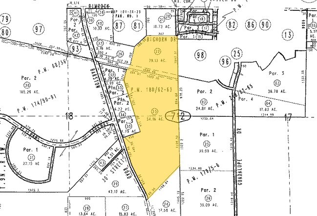 PTN SEC 18 TP 9N R 1W DESC AS FOL BEG AT E 1/4 COR SD SEC TH S 00 DEG 34 MIN 35 SECONDS E ALG E LI SD SEC 1199.52 FT TH S 43 DEG 46 MIN 10 SECONDS W 1168.84 FT TO PT IN C/L OF BARSTOW RD AS IT NOW EXISTS TH N 13 DEG 12 MIN 20 SECONDS W ALG